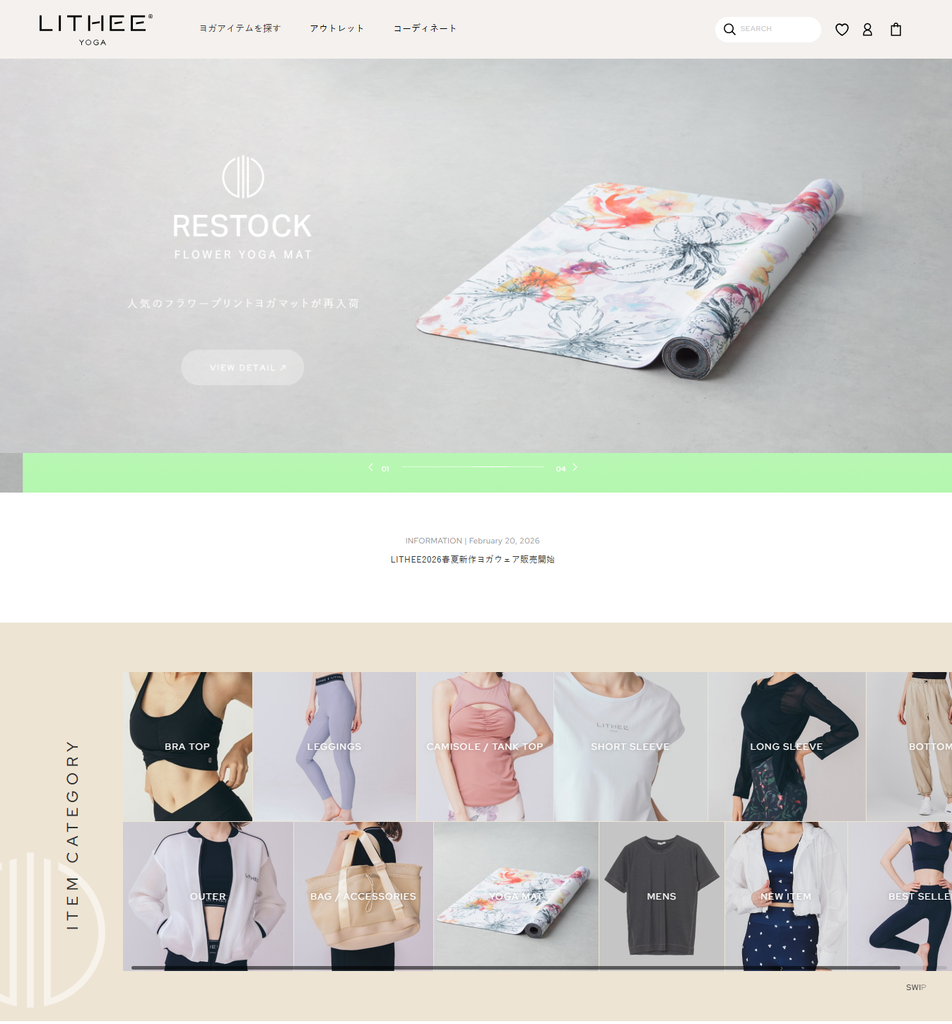 ヨガウェアを主軸にランニング・ゴルフ・フィットネス水着を含む、 多数のレディーススポーツウェアを販売されています。