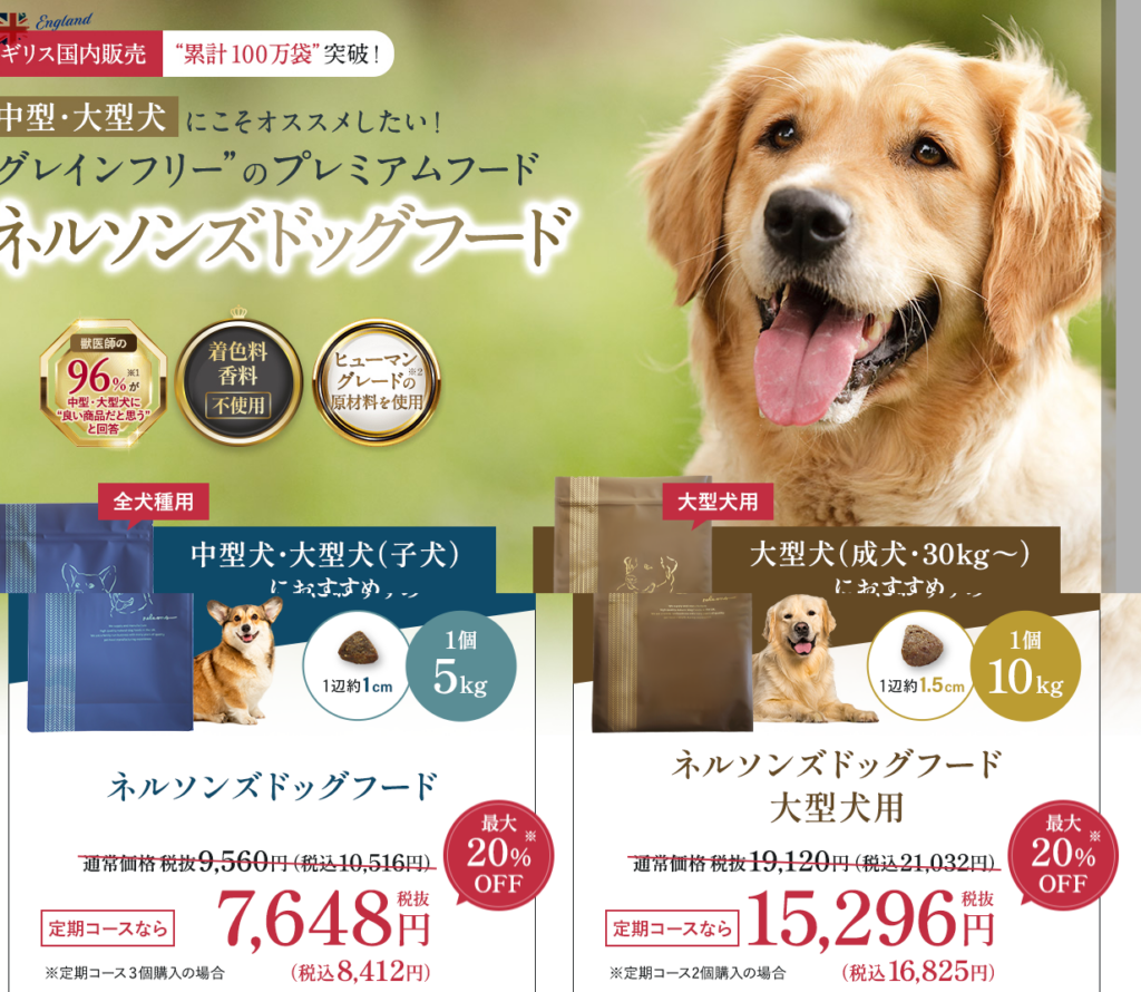 「大型犬は食べる量が多いから食事のコストが高い・・ でも安いフードだと原材料などの品質が不安・・・」 そんなお悩みのオーナー様におすすめしたいのが 「中型・大型犬のためのプレミアムドッグフードです。