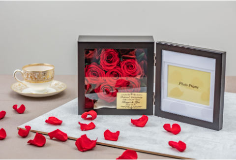 ・花束の保存加工や名入れオーダーで、特別な贈り物を演出できる