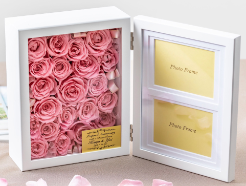 上質な木で作られた当店オリジナルのプリザーブド専用フォトフレーム。安定感もあり品が良く、記念のお花を保存するのにぴったりです。実用性◎